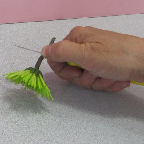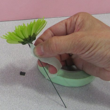 Begin at the top and turn the flower, holding the tape against the flower stem and pulling in a downward motion.