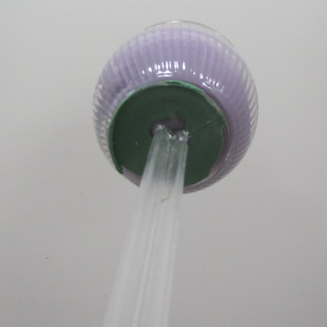 Put a small rolled ball in the center of the pedestal cap. Push down hard with the votive cup to spead and attach the glass firmly to the top. The floral clay also comes in white if you prefer.