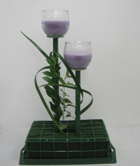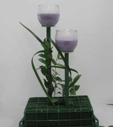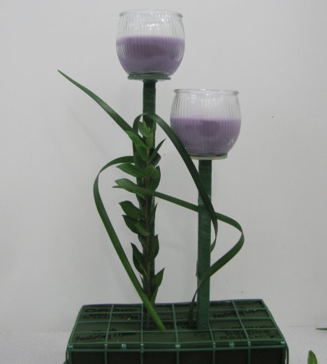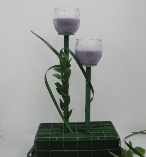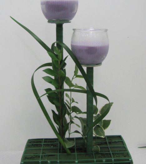 I inserted a second blade of grass and wound it down and around the lower votive candle rod.