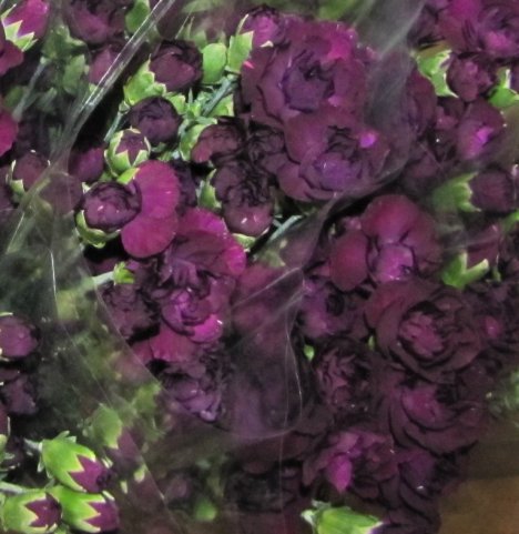 I'm also fond of the Moonlight carnations, which come in different shades of purple from deepest dark plum to light lavender. These are available in both standard carnations or miniature (spray) carnations.