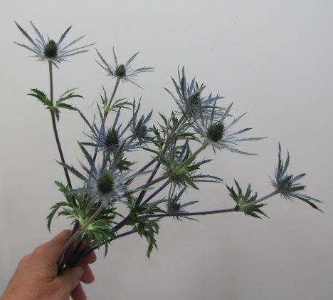 This is Eryngium - often commonly referred to as blue thistle. The lovely shade of blue and the unique flower head is a lovely addition to any flower arrangement.