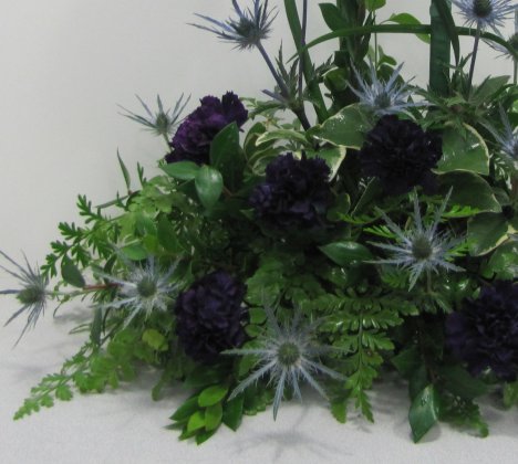 Then I just tucked in a few heads of the dark purple carnations for some depth contrast.