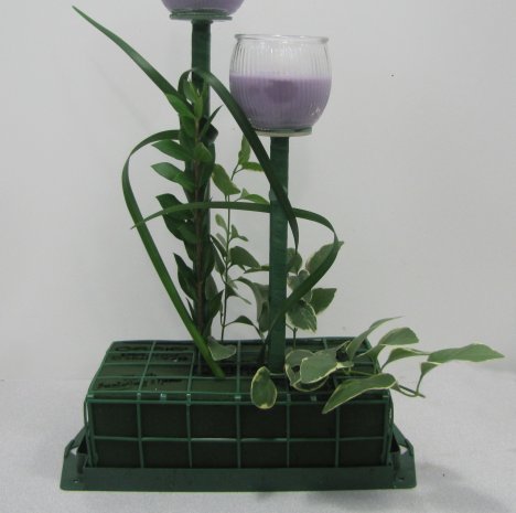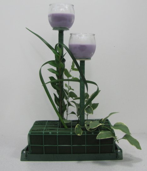 The greens are going to nestle around the bottom the the candles and eventually spread and and down towards the table top.