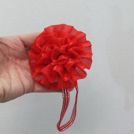 I happened upon this lovely elastic hair bows in a dollar store and immediately knew that I wanted to work them into a flower design at one point! These bands actually came three on a card for $1.00 - so I considered it a great buy that added a lovely snazzy look to my candy cane centerpiece!