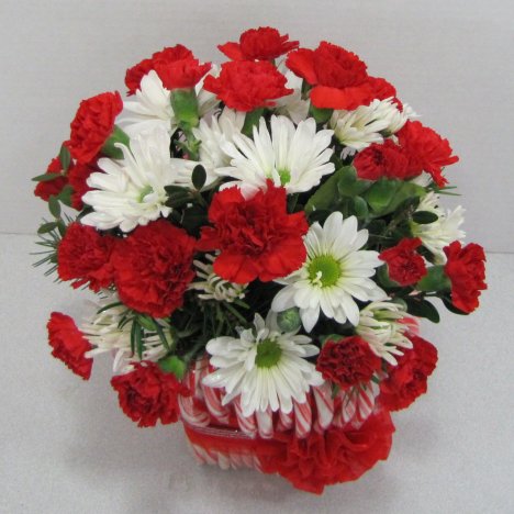 Here's a top view of the design. You can see how festive even a few simple carnations and daisies can make this unique design look.