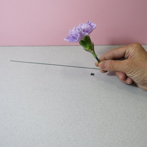 Gently bend the wire down so it is parallel to the flower's own stem.