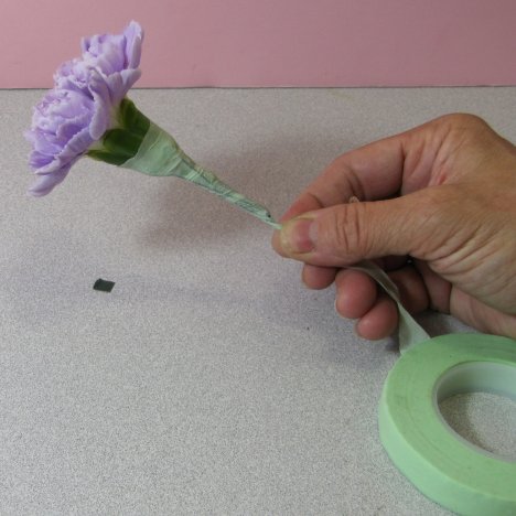 Continue to pull gently and wind the tape down the entire carnation stem.