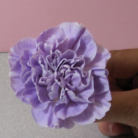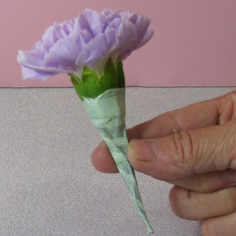 If the carnation is still only a partially opened bud, gently fluff out the petals with your fingers into a fully opened bloom.
