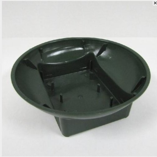 I usually put party centerpieces in "no show" containers. These molded hard plastic fit a 1/3 brick of Oasis foam and are cheap to ship. The cost is low enough that most florists consider these to be "disposable" centerpiece containers.