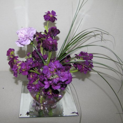You can see how the carnations quickly filled in this centerpiece! You'll note the soft mounding, but enough staggered heights of flowers to keep it interesting.