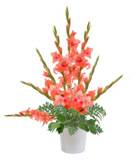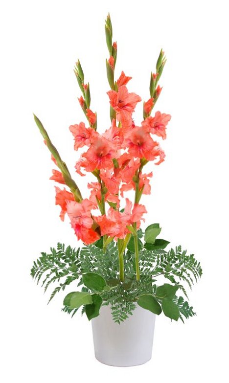 These ceremony flowers are a very basic design. Using all one flowers, it is a massed flower effect. If you want more contrast, consider using different colors of gladiolus. Their growing season is between May and December.