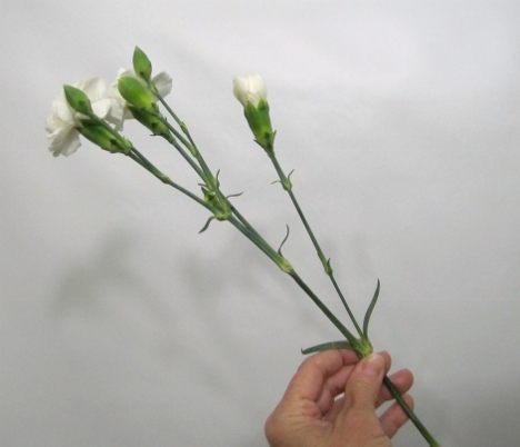 Insert the other carnations straight up at the center and begin slanting outwards as you move out towards the edges.
