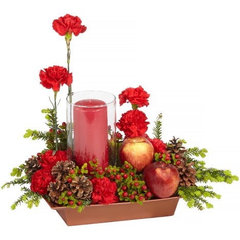 This centerpiece calls for a mix of Christmas greenery to be tucked around the carnations and fruit. You can choose from the different assorted below if you don't have any evergreens that you can harvest yourself from your own yard.