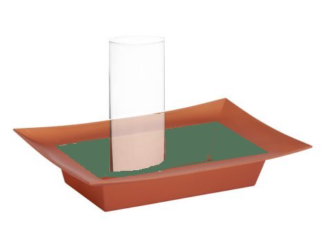 A simple 9 inch cylinder vase serves as a globe to hold a red (or green or white) pillar candle. (Remember to never leave a lit candle unattended. Glass could become hot after the candle has been burning for a while.)