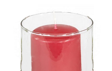Place a piece of florist clay around the bottom edge of your pillar candle. Carefully drop the candle down into the cylinder vase and press down hard until the candle is secure and doesn't move around.