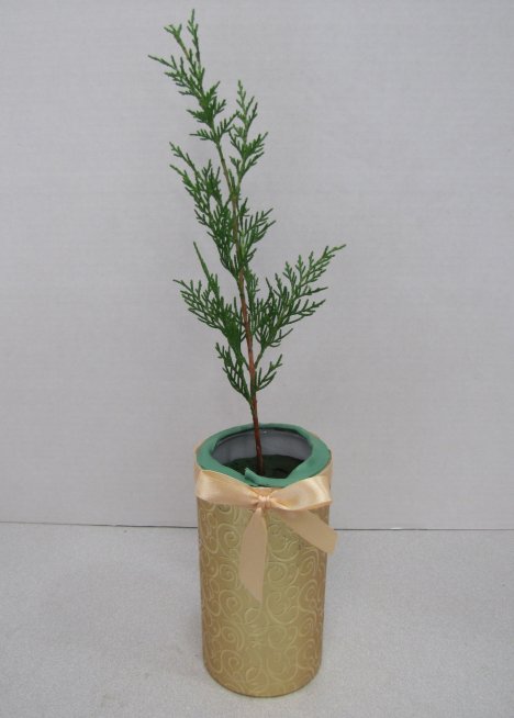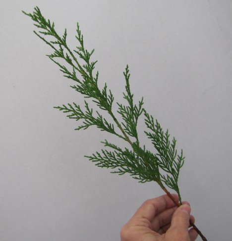 Here is a nice, tall piece of cedar. It does have a definite curve to the top part and rather droops over a bit.