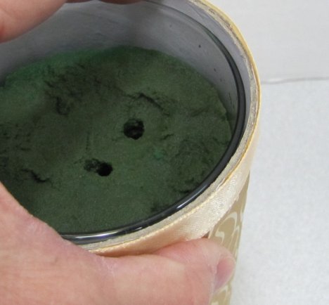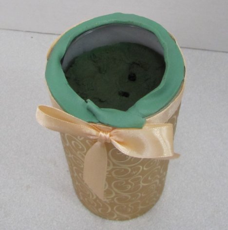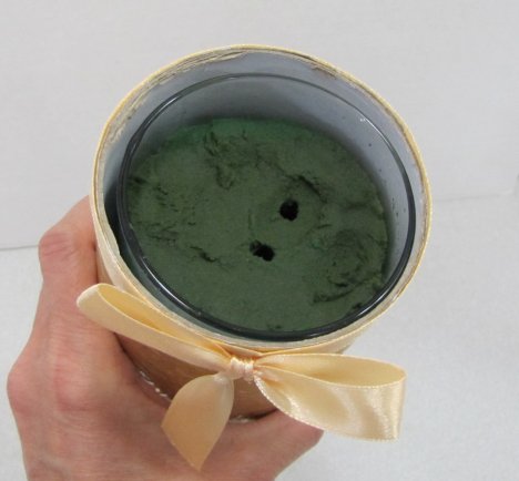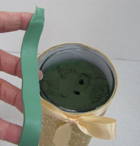 I'm going to use a strip of my florist clay to seal that opening so all water put into the vase goes inside where it belongs.