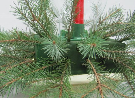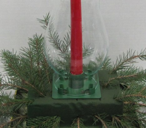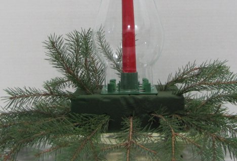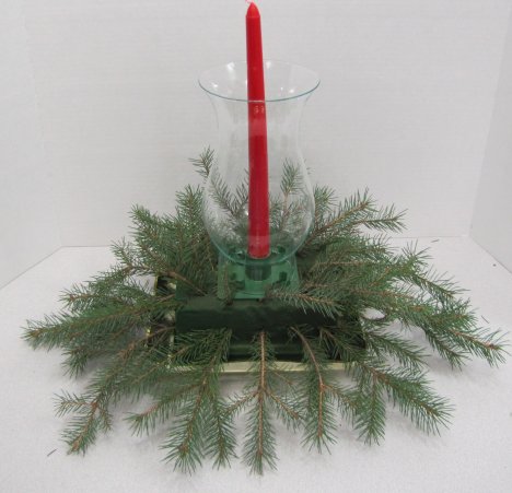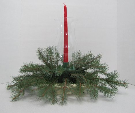 The centerpiece quickly takes the shape of what florists refer to as a "long and low" design. This means it fits well on a table, while still allowing people to sit, eat and see each others faces to have a conversation. The chimney and candle don't generally interfere that much.