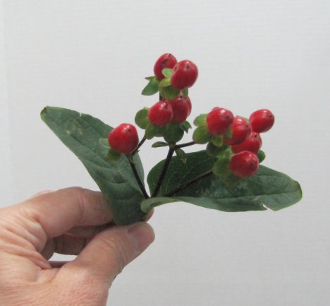 Hypericum really is a favorite of mine. It is generally plentiful all year round. It is a particular favorite at Christmas, however, so if you plan to do a lot of arrangements it's good to place your order early.
