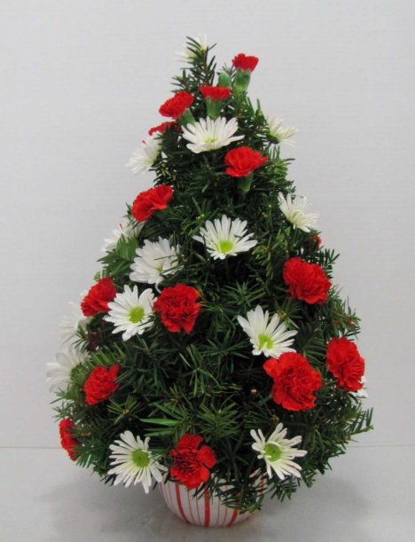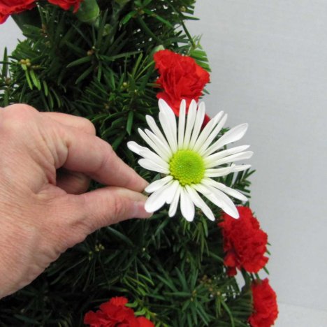 Insert the daisies at a downward angle just like you did the greenery and the carnations.