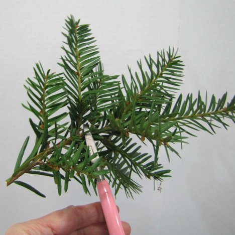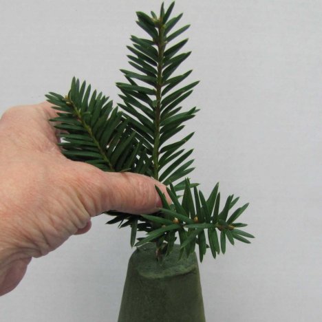 I cut off separate laterals of single stems and clean the needle like leaves off the bottom, leaving a bare stem to insert cleanly into the foam.