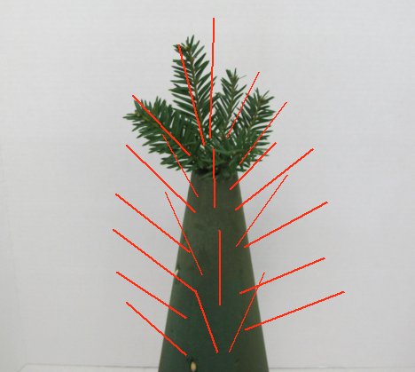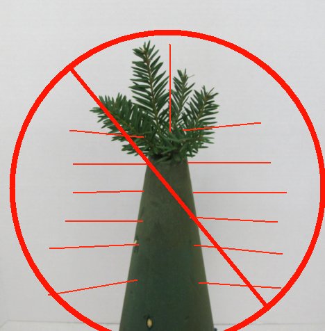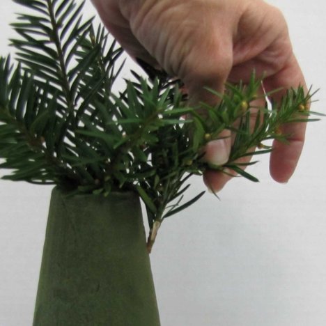 The proper greening simulates a natural tree growth. Insert your greenery stems downward at a sharp angle, imitating the branches of a real tree.