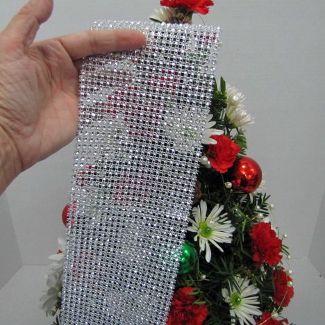 I love using this diamond wrap for use in Christmas designs. It can be wrapped around vases for extra sparkle or cut into smaller strips for smaller accents.