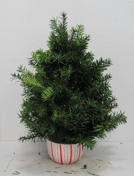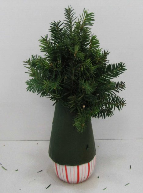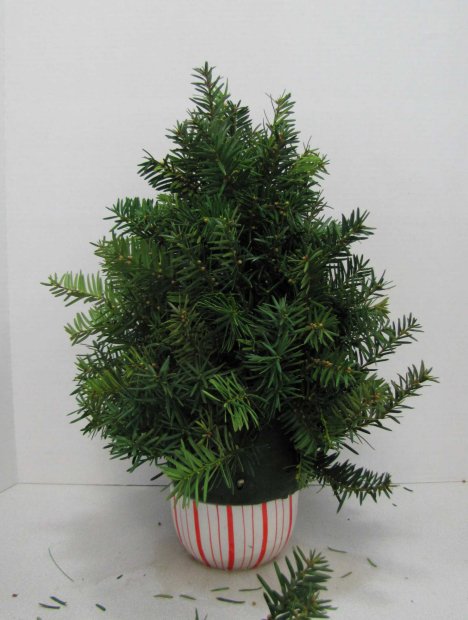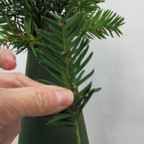 I keep my beginning stems a little shorter at the top. They will get longer as I move down the tree design. The size of the final tree is determined by how long you cut your evergreen laterals.