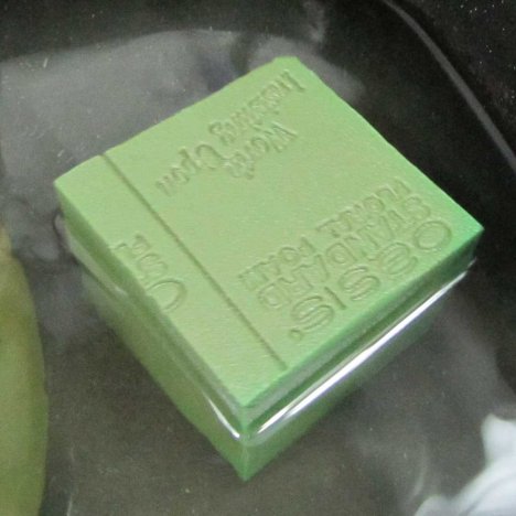 You'll need one brick of florist foam cut into approximately a third to fit this container. The Oasis is scored lightly to make easy measurements.