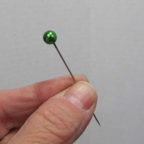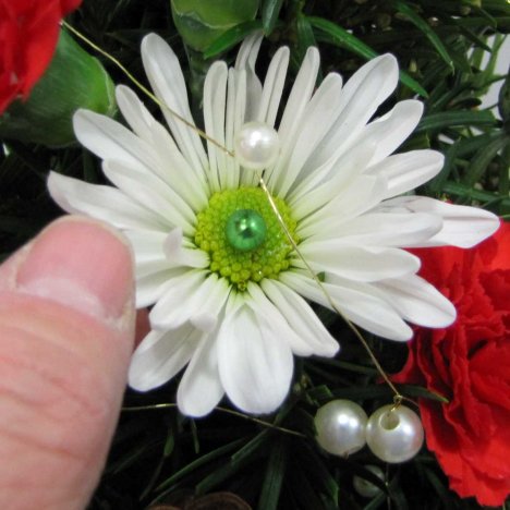 I'm going to use colored pearl pins in apple green to add a gleaming orb to every daisy center.