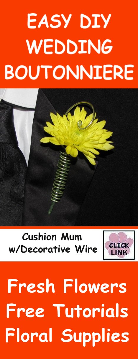 Decorative wire is available in many popular wedding colors and can be easily shaped into wire armatures to enhance even the simplest flowers and turn them into attractive (and modern) wedding boutonnieres.