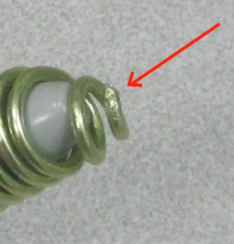 I first created a tight circle with a twist of the needle nose pliers on the cut end of the wire. This makes a closed spiral on the very bottom of the marker.