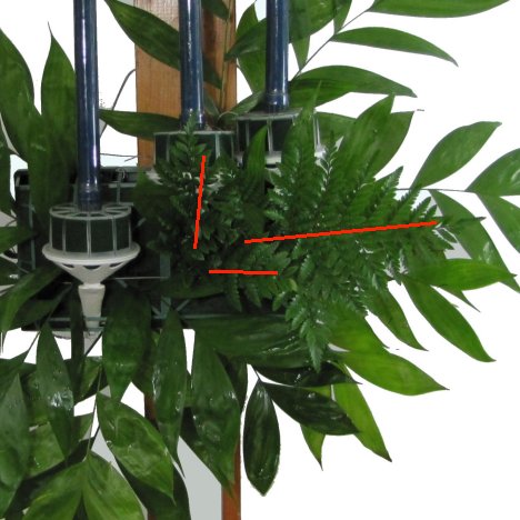 Now I start using a whole stem, inserting three more pieces on the left and upper portion of the design.