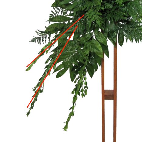 Instant trailing length gives a dramatic look of a big, dramatic presence. I'm going to insert just a few stems on the lower left and upper right of the design.