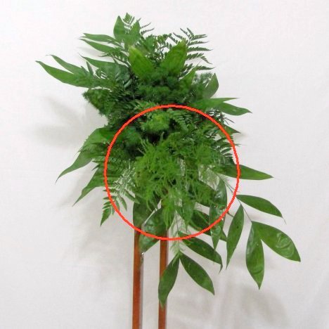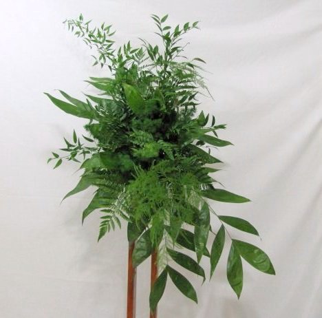 Church flower stands are more interesting with different varieties of greens. I'm going to add another feathery fern to this church wedding stand. Plumosa (also commonly referred to as asparagus fern) is a feathery draping green with graceful lines that adds an airy touch to your arrangements.