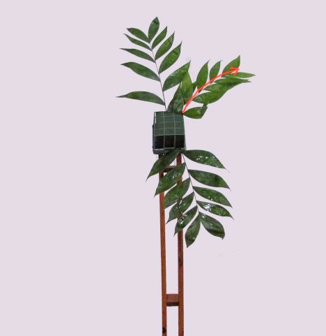 Tug lightly on the cage to be sure that it is firmly attached to the candelabra. Wet foam and lots of greenery and flowers are HEAVY. Take care that the mechanics (foam cages) are securely attached and (eventually) hidden by the flowers or greenery.