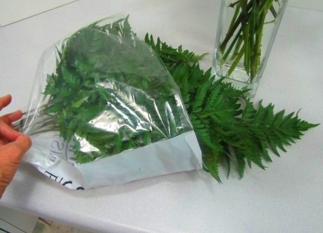 Florist usually use a product that is called "plant polish". Just as the name implies, greenery that comes straight from the farm has been packed in bunches and is briefly rinsed.