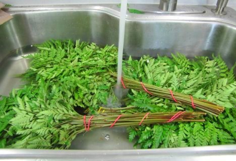 I like to soak my bulk greens in a tepid water bath before cutting and placing in a water bucket. Do NOT use flower food with greenery. It doesn't really hurt them in low doses, but it can cause some greens to turn a yellow.