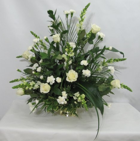 The standard roses are usually larger than the other flowers. Other good choices for church florals are Asiatic lilies. They open up to a large head and are very cost effective.