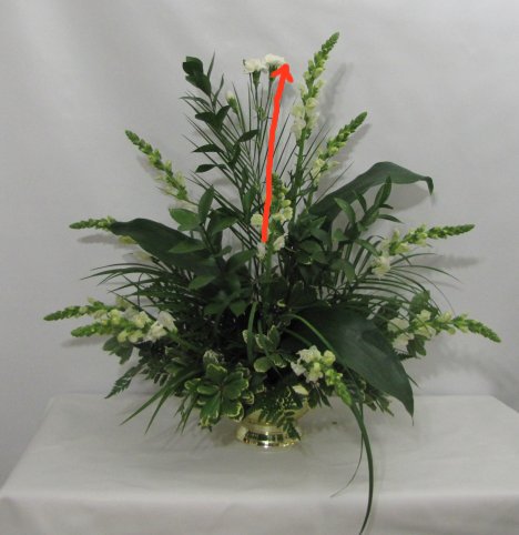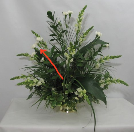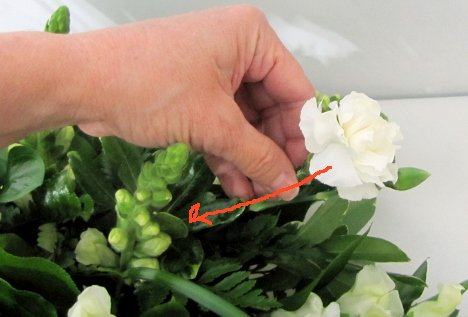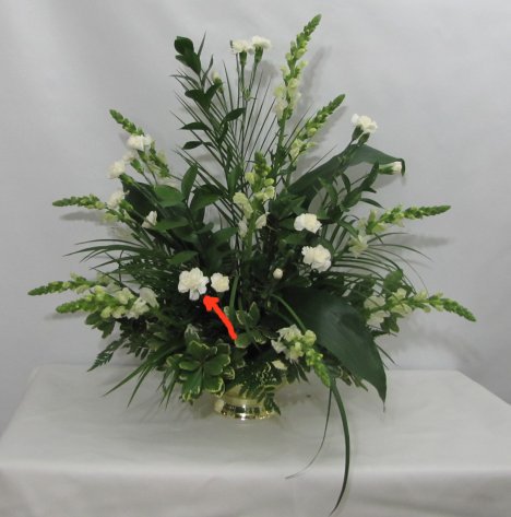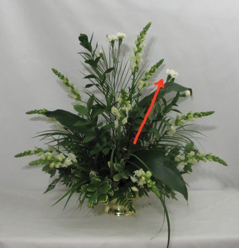 You can see how I placed the first stem directly in the back and center of this floral, using all the flower heads on the single stem.