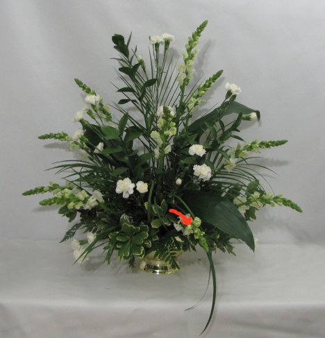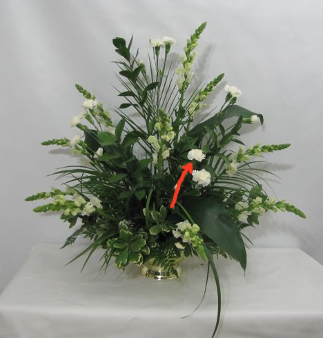 I still have more carnations to place in this floral, but you can see that it flowers in rather quickly. You can even transport your greened pieces to the church and finish flowering once you are there.