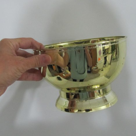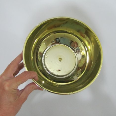 This one measures approximately 7 inches across and is deep enough to support a tall, elaborate centerpiece for church decorations.