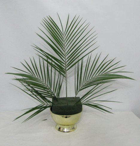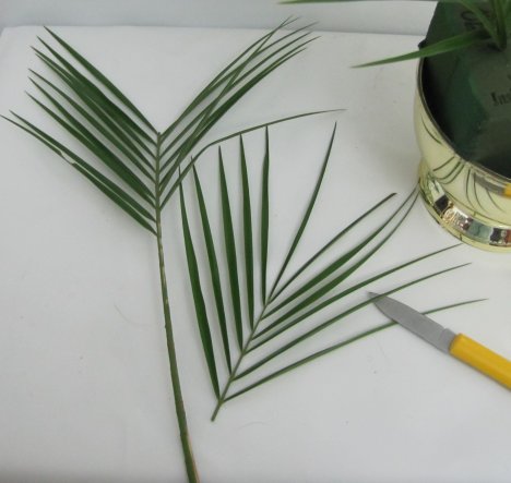 Once the final design is greened with other varieties of greenery and flowers, you'll never notice that a palm has been cut in half.