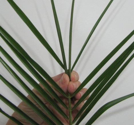 Take the smaller cut top of the palm and insert it under the full palm on the right.