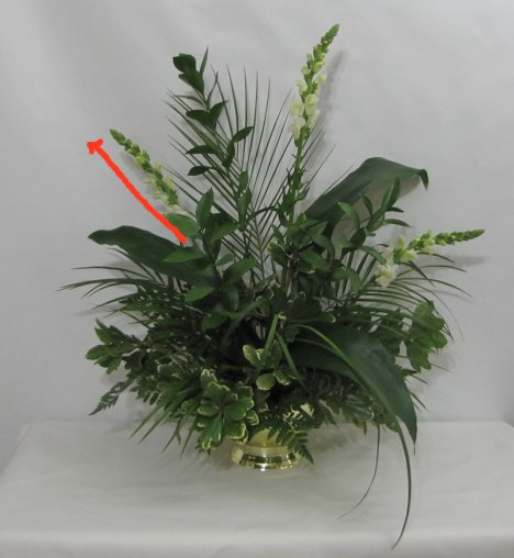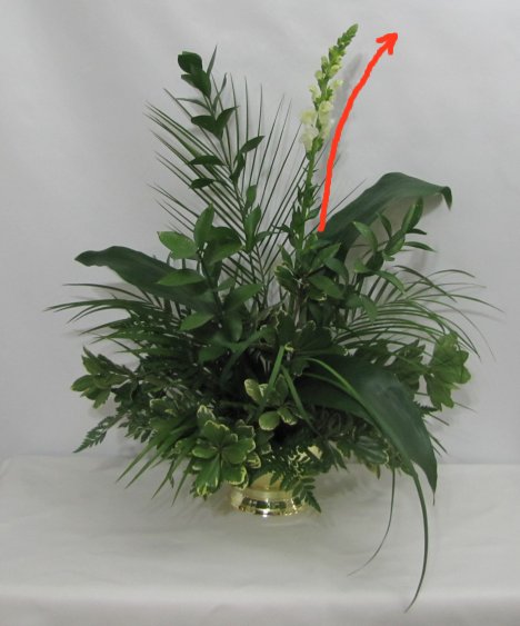 The flower heads typically extend beyond the tip of the largest fern or leaf, framing your design and setting the length and width of your final design.