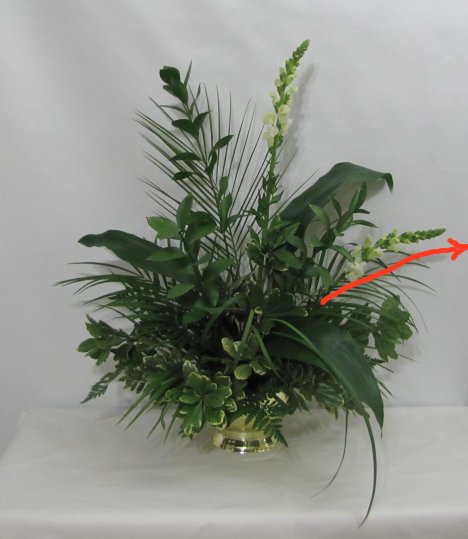 Church wedding flowers need tall and big - such as this first flower, the snapdragon. I'm going to fill in this church floral with all white flowers. You can substitute your own choice for a different look or add in a new color palette.