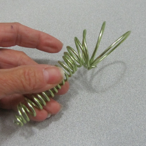 For a finish, simply pull the end of the coiled wire up and over the side of the flower head, centering the tightly coiled end over the flower head.