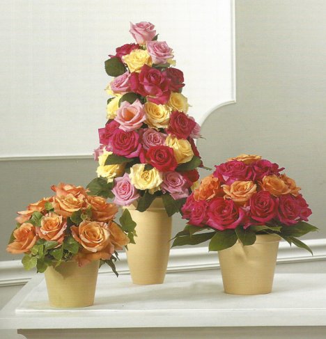 colored rose cone topiary