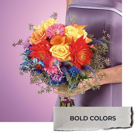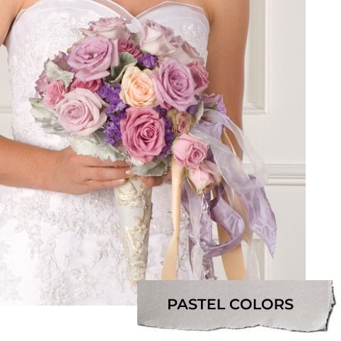 Your colors wedding scheme need not always match the bridesmaid's dresses - but today's brides do better to consider contrasting or complimenting the dresses. For instance, if your attendants wore deep royal blue, contrasting colors of soft pinks will show up better in photographs than if they carried deep blue flowers.
