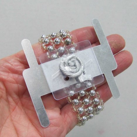 Many of the newer wrist corsage bands are designed to be used for various methods of construction and design. They can be used for traditional wired corsages, tied on corsages or glued corsages.